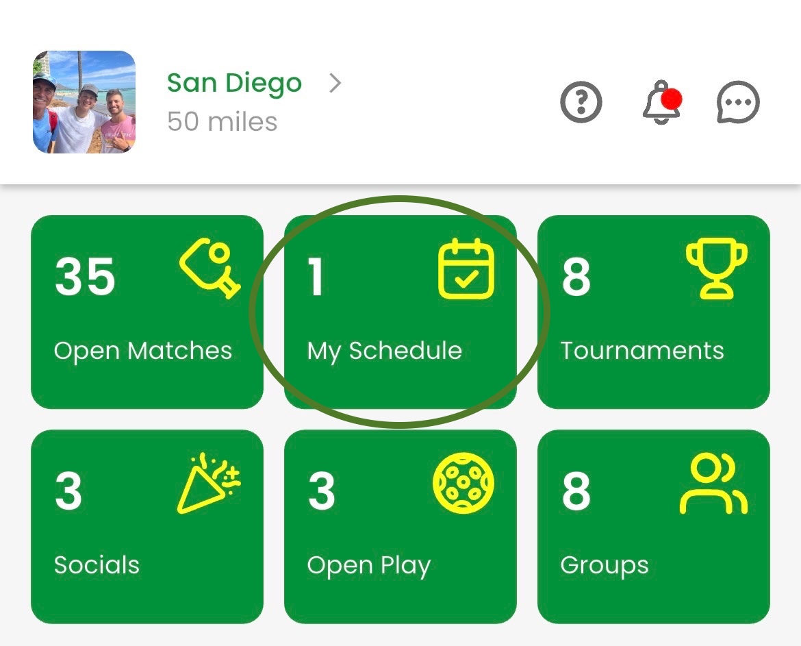 Staying organized is easy with the My Schedule feature, which helps you keep track of all your upcoming matches, lessons, and events in one place.