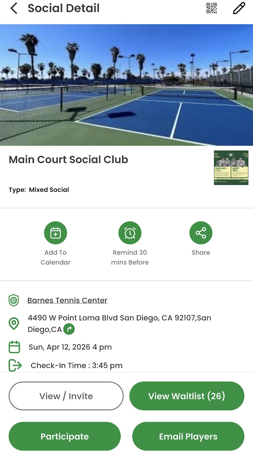 Main Court makes it easy to promote what you’re organizing directly to the community — helping you fill spots faster and get more visibility.