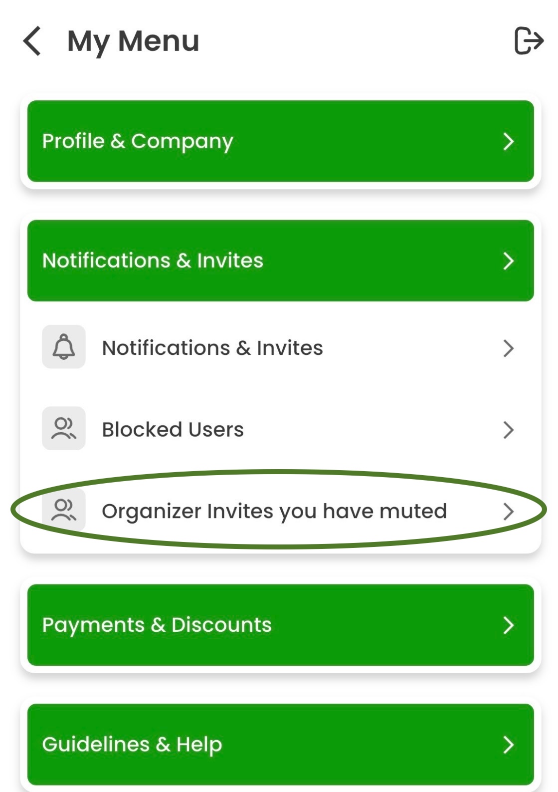 Step 3: Press "Notifications & Invites," then "Organizer Invites you have muted."