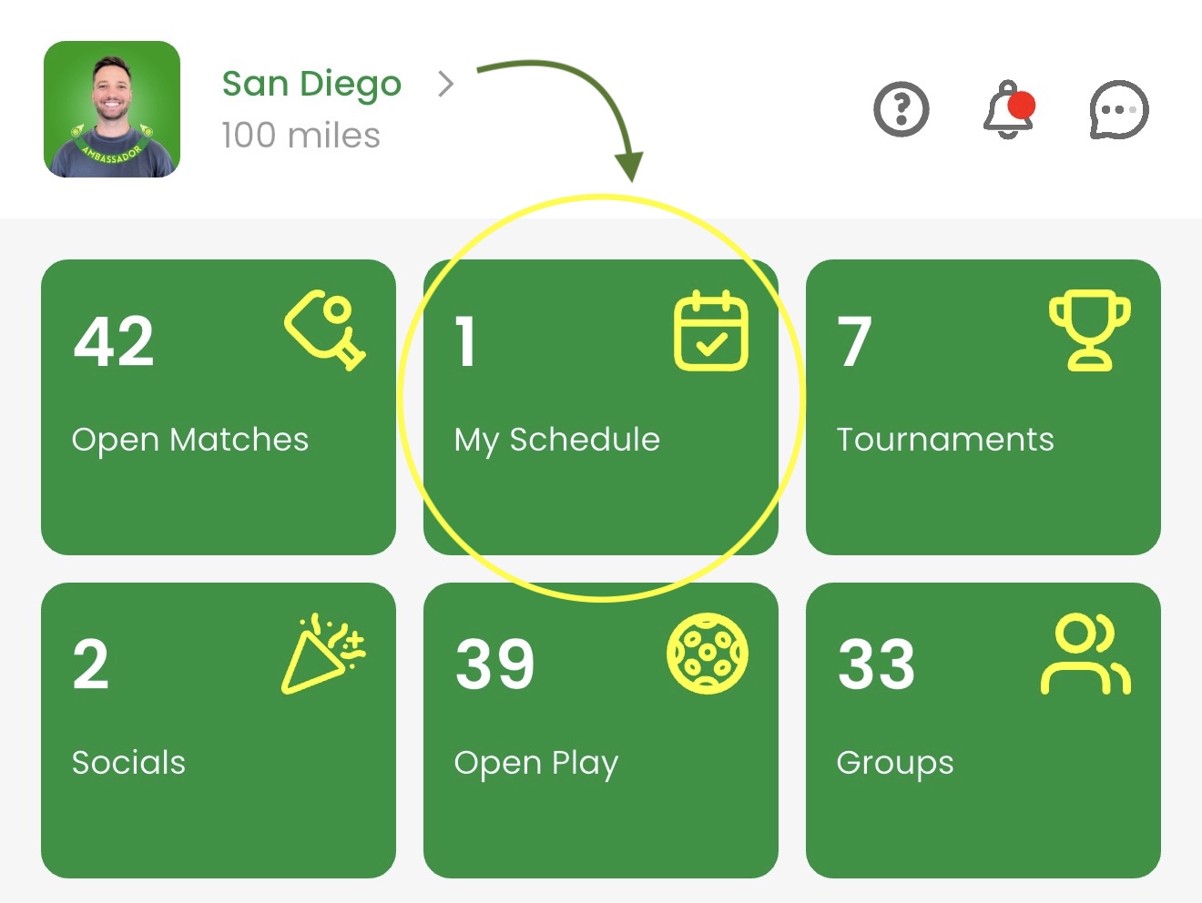 • Show your match registration to the front desk at Barnes Tennis Center. Press My Schedule and press into the specific ladder match for that evening you're attending.