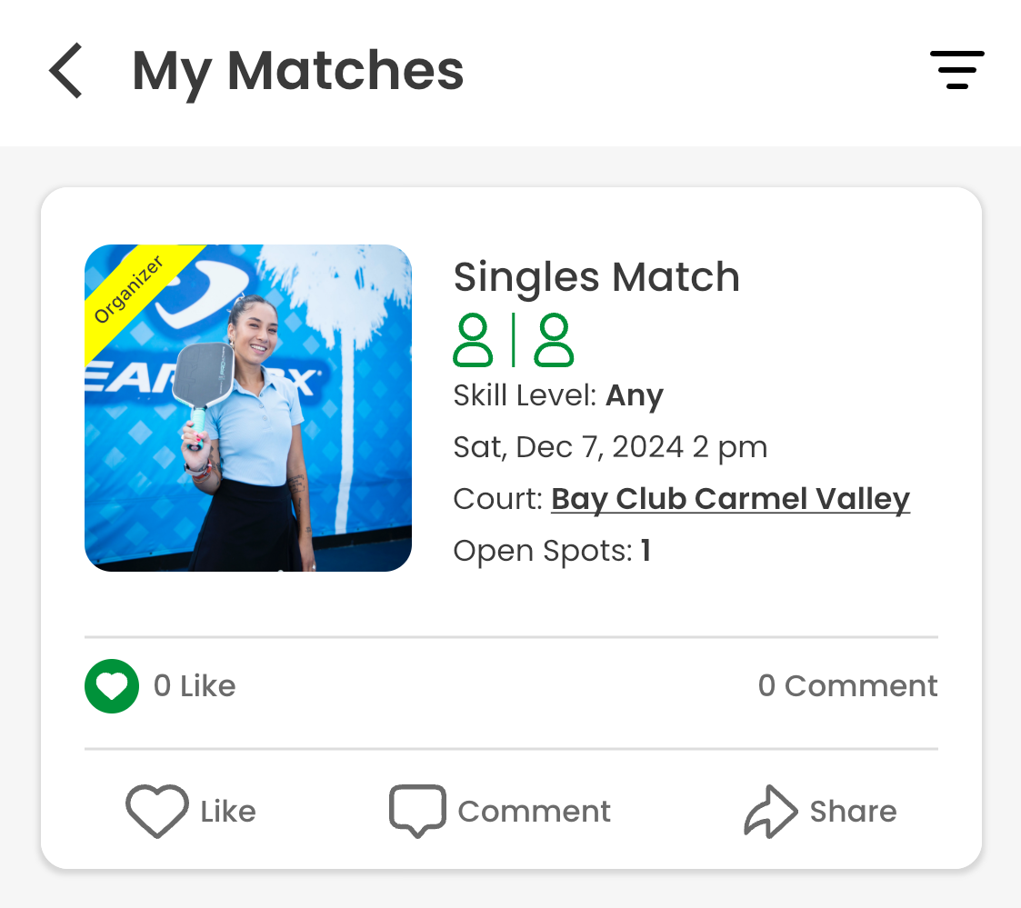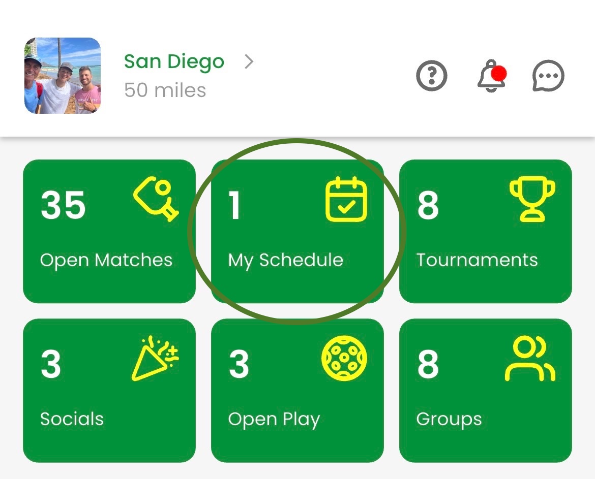 Step 1: To cancel your spot, start by navigating to the "My Matches" section on your home page. This will display a list of all your upcoming matches.