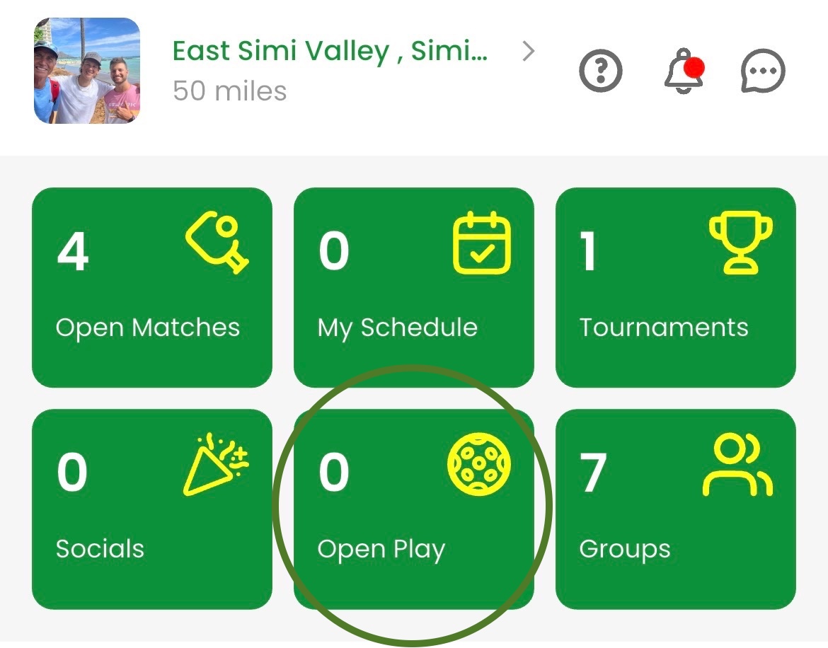 Step 2: This feature lets you explore a list of Open Play sessions being hosted in your area.