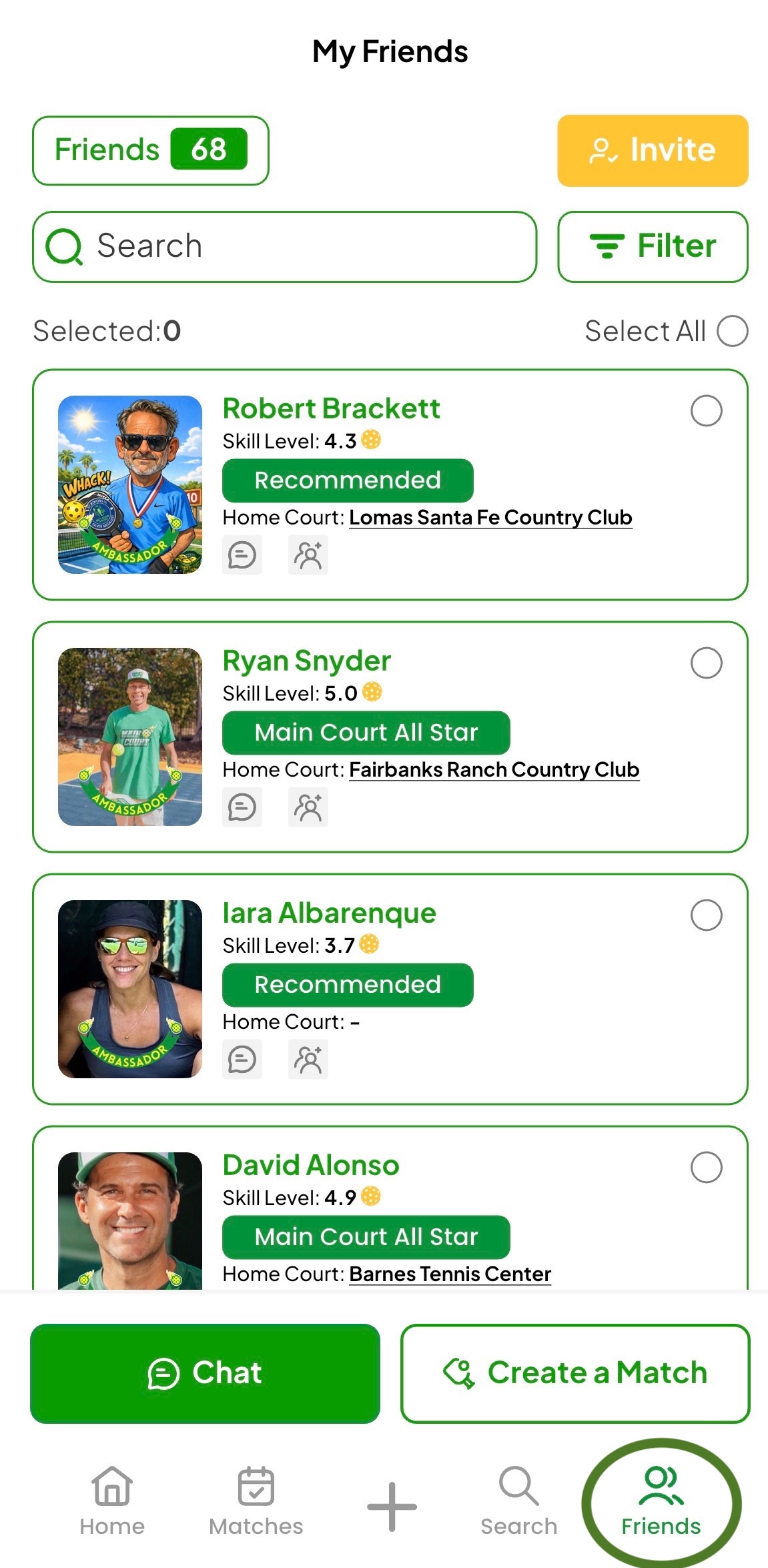 With friends on Main Court, inviting players to matches becomes quick and effortless. The more friends you have, the easier it is to organize vibrant pickleball matches and create lasting memories on the court.